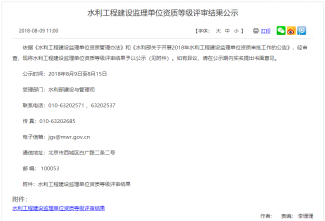轉(zhuǎn):水利工程建設(shè)監(jiān)理單位資質(zhì)等級評審結(jié)果公示