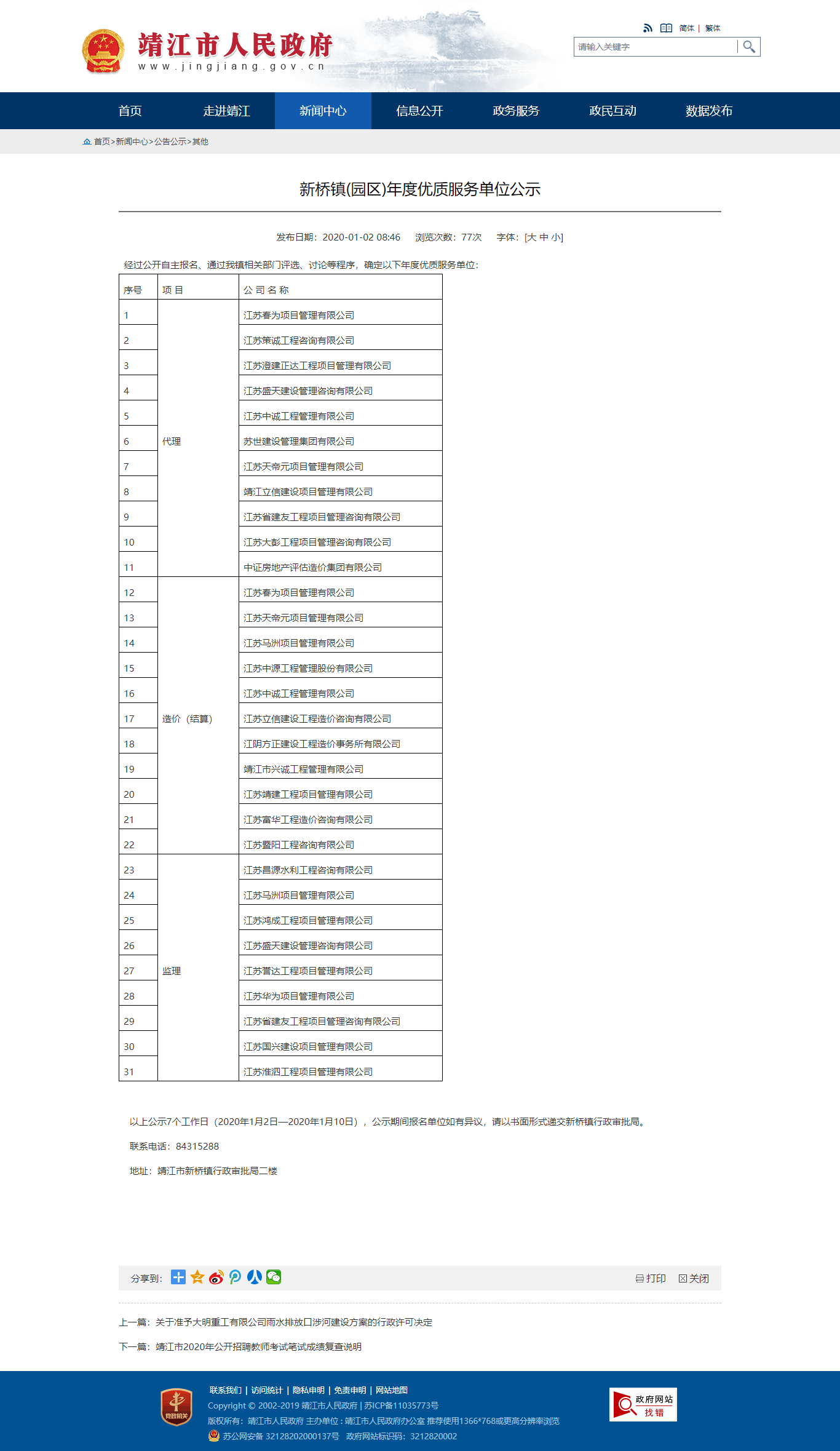 新橋鎮(zhèn)(園區(qū))年度優(yōu)質(zhì)服務(wù)單位公示
